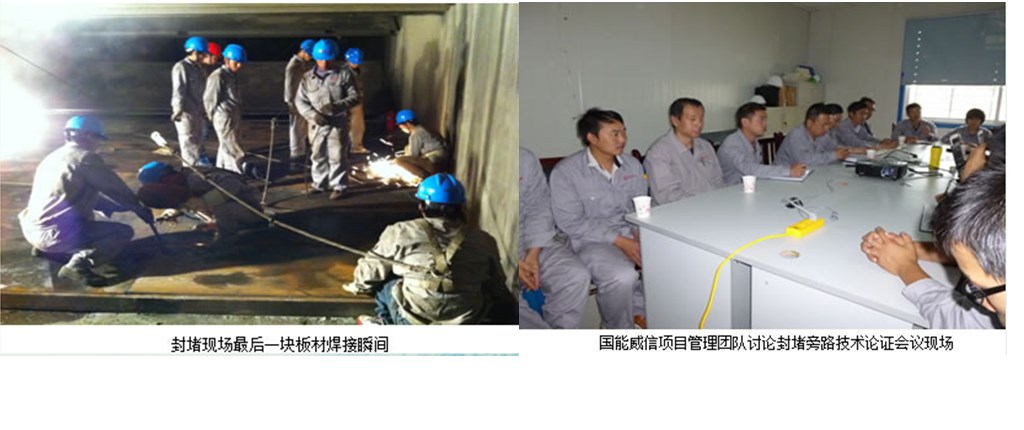 此次封堵是龍?jiān)磁c國能交接后的第一項(xiàng)重大工作,工期緊、任務(wù)重、封堵位置特殊。現(xiàn)場(chǎng)施工地點(diǎn)狹窄、焊接工藝要求嚴(yán)格、吊裝空間狹小,這給施工帶來了很大的困難。為使施工進(jìn)度不受影響,全體工作人員充分發(fā)揮了“特別能吃苦、特別能戰(zhàn)斗、特別能奉獻(xiàn)”的項(xiàng)目精神奮戰(zhàn)在工作現(xiàn)場(chǎng),加之業(yè)主方及國能中電威信項(xiàng)目管理團(tuán)隊(duì)多方努力配合支持,最終經(jīng)過三天的不懈努力,圓滿完成此次旁路封堵任務(wù)。