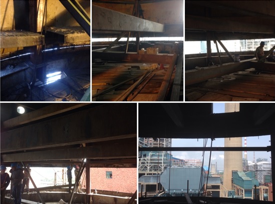 2015年5月1日11時16分,在業(yè)主、監(jiān)理、國能中電太倉項目部、施工單位以及相鄰國華太倉電廠業(yè)主的共同見證下,6#吸收塔增高施工當天成功頂升圍板,這預示著協(xié)鑫太倉超低排放項目的建設進度更進一步。