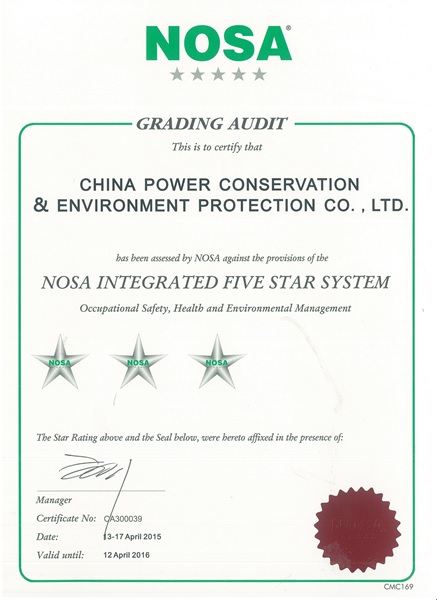 7月13日,經(jīng)過NOSA科學(xué)、嚴(yán)格地考評(píng),國能中電被正式授予“NOSA五星管理系統(tǒng)”三星級(jí)證書。