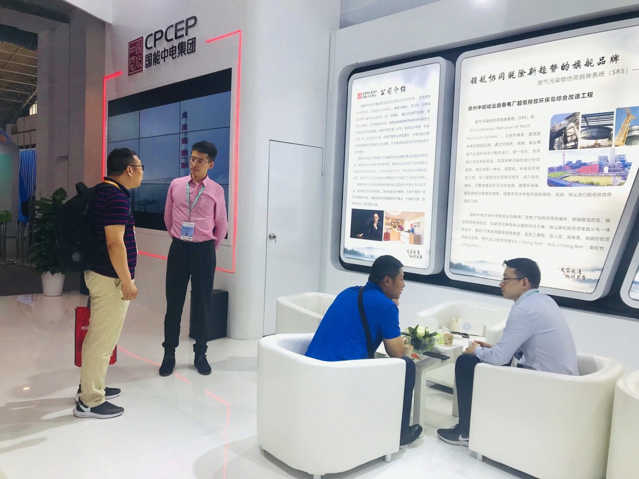 國能中電作為節(jié)能環(huán)保行業(yè)的領(lǐng)軍企業(yè),多年來致力于工業(yè)煙氣治理、超凈火力發(fā)電、生物質(zhì)能源利用、綠色金融服務和環(huán)保新材料研發(fā)等領(lǐng)域。在此次展會中,國能中電集中、全面、生動地展示了公司煙氣污染物協(xié)同脫除系統(tǒng)(SRS)—環(huán)保島、炭基催化劑干法煙氣多污染物一體化脫除技術(shù)、余熱閃蒸自結(jié)晶“3C-MED”脫硫廢水零排放技術(shù)、激光熔覆技術(shù)、環(huán)保浸金劑技術(shù)等多項優(yōu)勢核心技術(shù),以及環(huán)保裝置第三方運維、環(huán)保核心設備生產(chǎn)等專業(yè)服務。